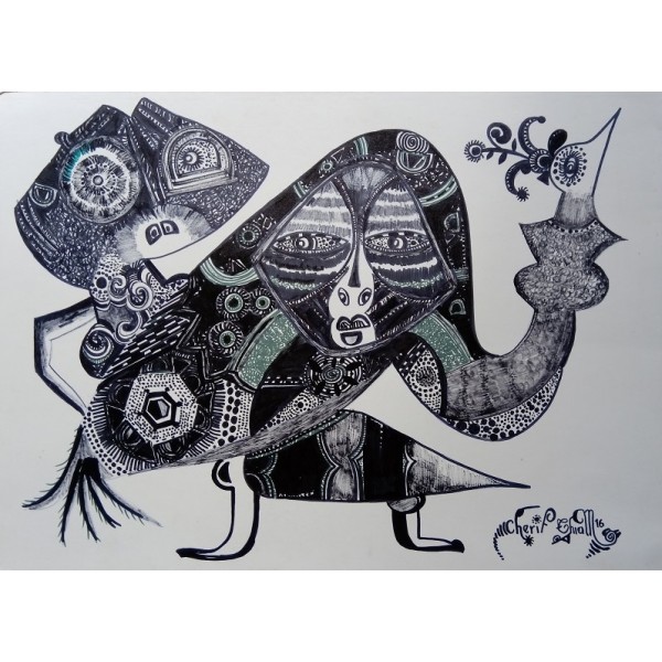 Feutre sur carton, noir et vert, format 44x60cm, signé en bas à droite, 2016.
