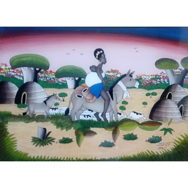 La bergère. Peinture "fixé sous-verre". Format 24x32cm. Signé par l'artiste - 2020.